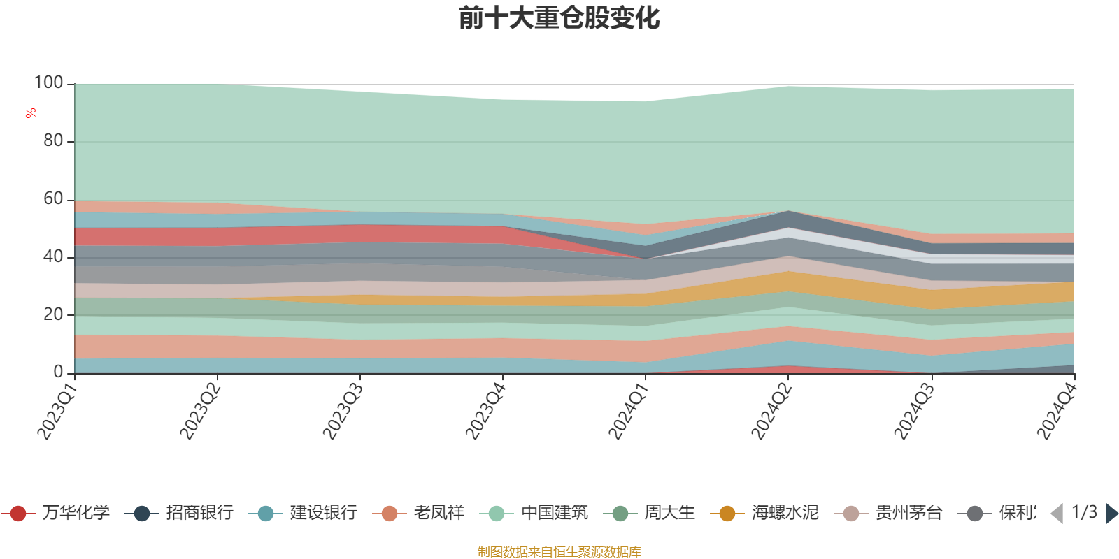 该基金持股集中度较高,且持股标的较为稳定。截至2024年四季度末,基金十大重仓股分别是建设银行、海螺水泥、中国神华、周大生、中国建筑、中国海洋石油、老凤祥、宁德时代、老板电器、招商银行。