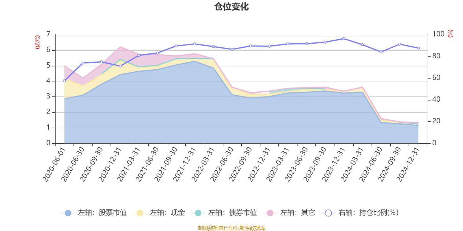 据定期报告数据统计,近三年平均股票仓位为90.08%,同类平均为84.91%。2023年末基金达到96.34%的最高仓位,2020年上半年末最低,为57.44%。