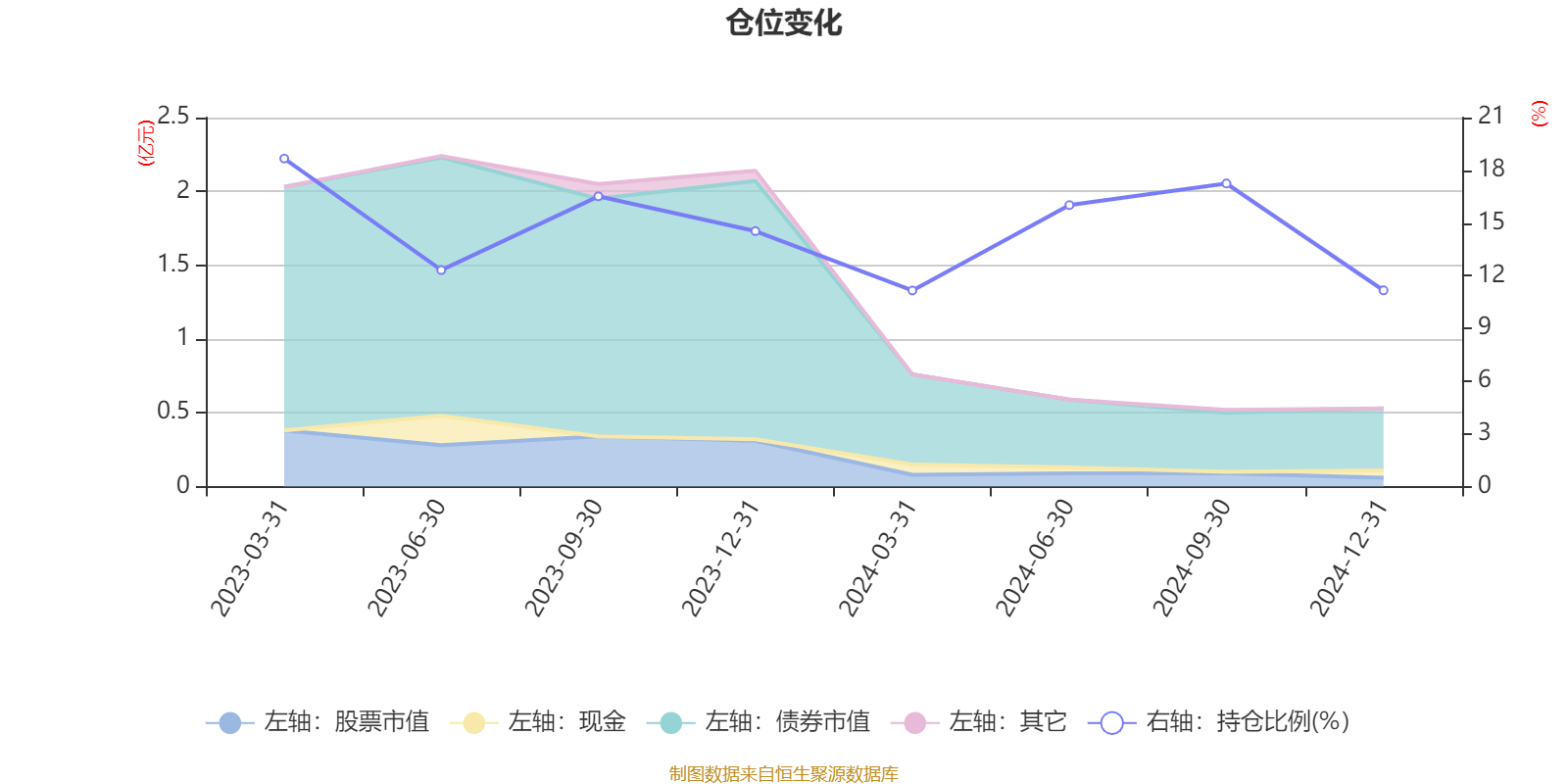 基金管理人在四季报中表示,债券资产方面,本基金增加3年信用债持仓,增加利率债波段交易,逐步改善组合流动性。权益资产方面,可转债及股票仓位均有所降低。